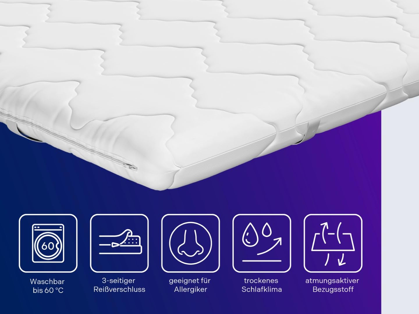 - EINFACHE PFLEGE - Elastische Bänder zur sicheren Befestigung an der Matratze; Bezug abnehmbar und waschbar bis 60° C - optimal geeignet für Hausstauballergiker